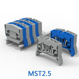 MST系列接线端子隶属于弹簧式接线端子,换而言之,其采用弹簧压线的接线方式,安装时只需用螺丝刀将弹片撑开,然后将导线置于弹片的压线框内,抽出螺丝刀即可。