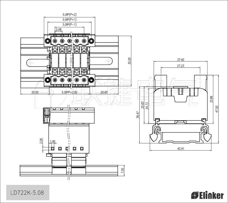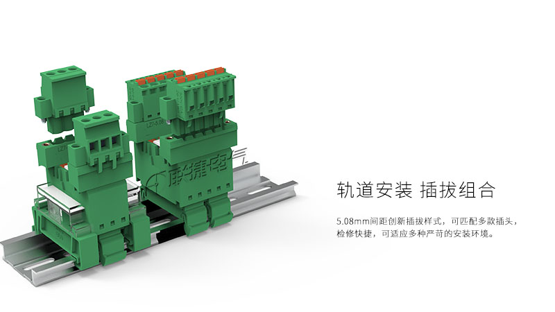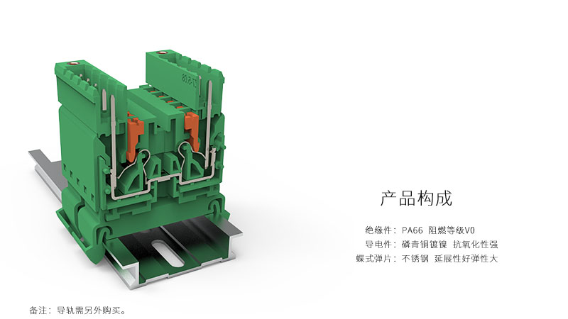 轨道式弹簧端子一体式结构可提供2~24P