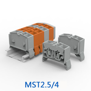 MST系列接线端子隶属于弹簧式接线端子,换而言之,其采用弹簧压线的接线方式,安装时只需用螺丝刀将弹片撑开,然后将导线置于弹片的压线框内,抽出螺丝刀即可。