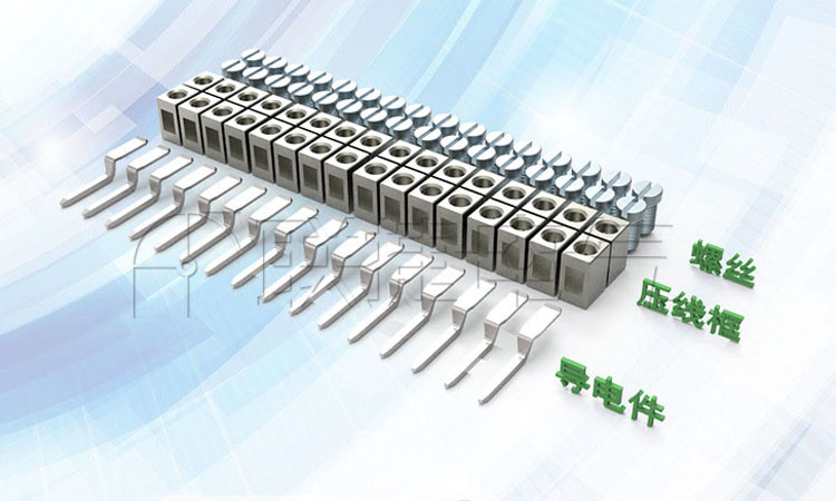 端子的主要组成部分有:绝缘件、压线框、导电件、螺丝。