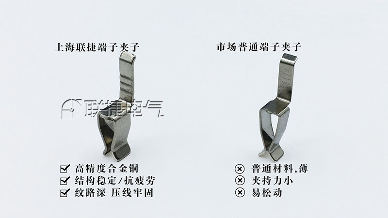 除改进管理措施外,还应提高电子元器件的采购质量,采用在使用期内不检修或少检修的电气设备,这将会使供电可靠性大幅度的进行提高。上海联捷电气定位中高档端子连接器,为了降低电气设备的检修频率,端子排皆采用PA66或PC材质,阻燃等级控制在V0,五金件也采取高规格材质,与市场同类型端子相比,用料扎实,电气性能高 (如下图所示) 。