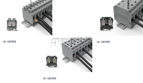 端子组合通常遵循行业标准,便于不同设备和系统之间的兼容性。就像手机充电器的标准化,使得不同品牌的手机都能使用同一个充电器。联捷电气设计的端子的搭配在一起也使得在同一场景也可以放心使用不同的端子。比如UK35N、UKH95、UKH50在变压器内的搭配。