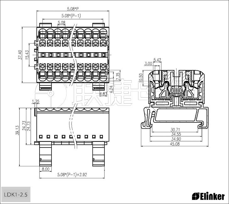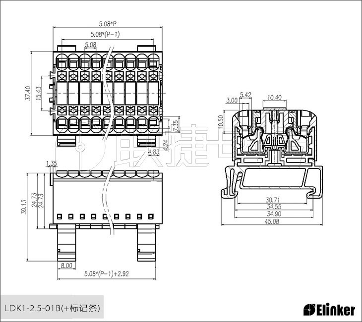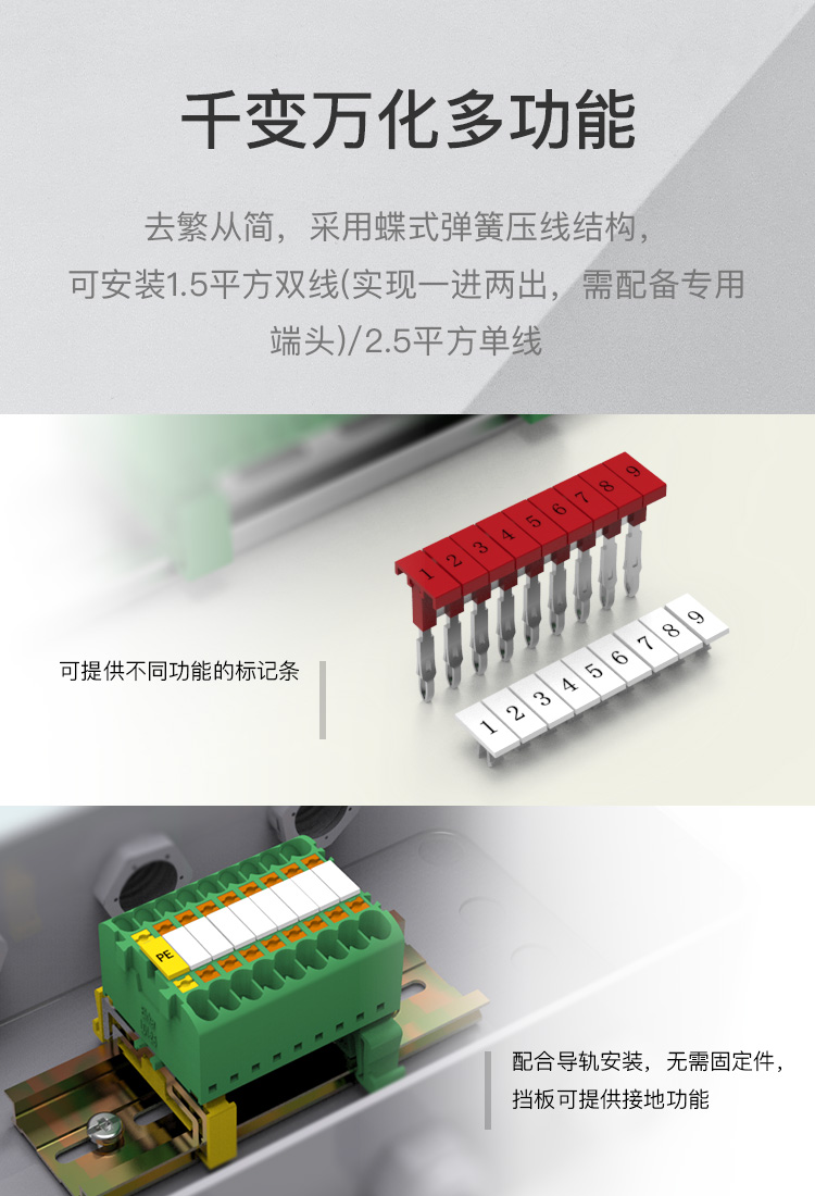 轨道式弹簧端子一体式结构可提供2~40P