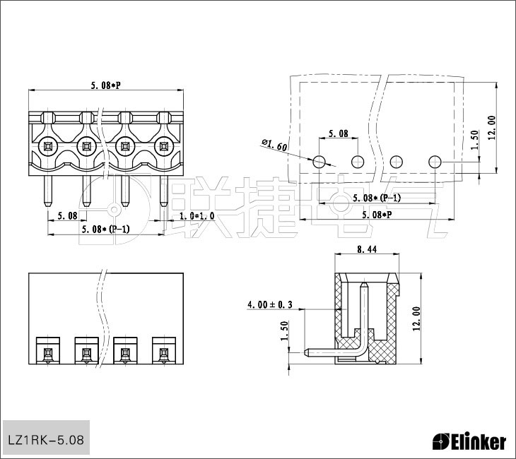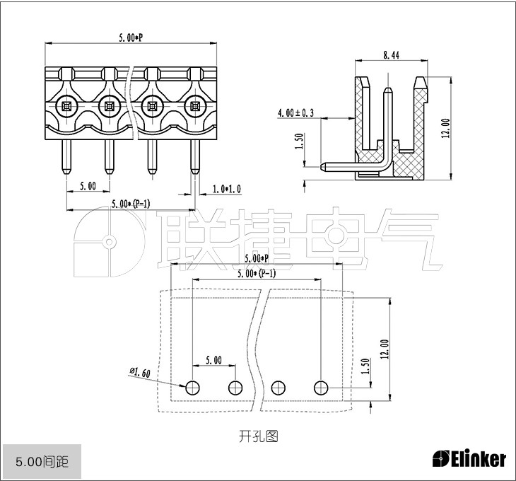 插座针距5.0/5.08,水平入线;