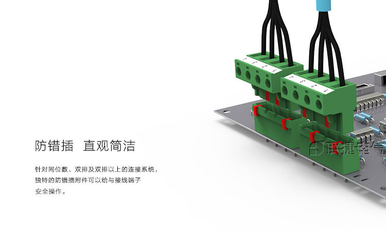 通过防错插件对插头插座进行防错位保护。