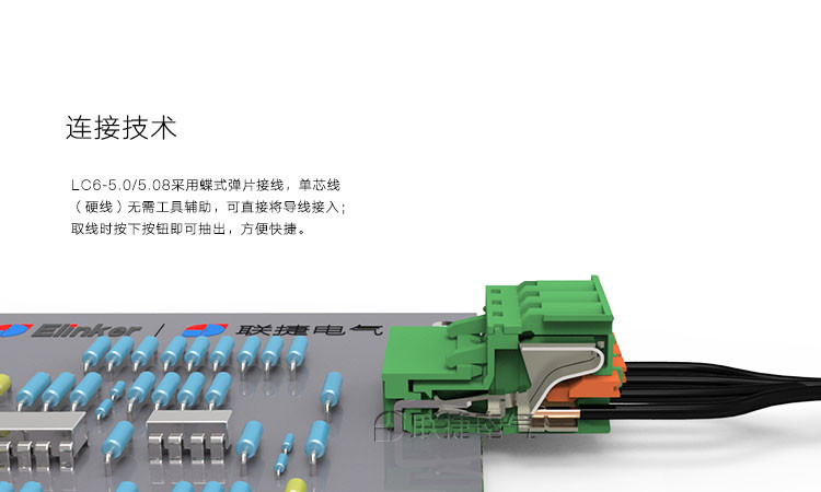 弹簧连接方式,只需将导线直接插入接线位即可,快捷方便;