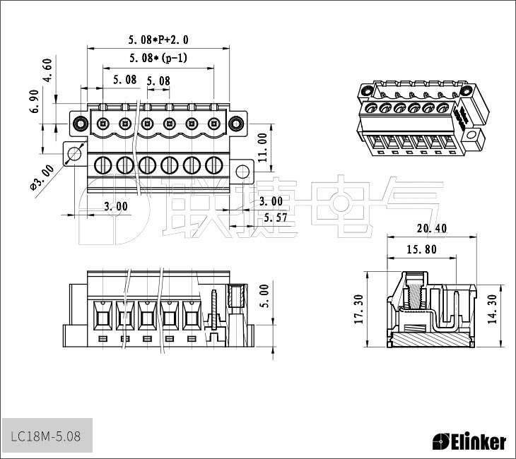 LC18M面板接线块,采用固定螺丝直接安装在壳体或PCB板上;