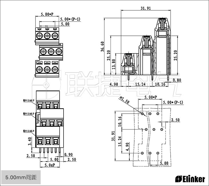 直焊式接线端子 焊接式接线端子 三层接线端子 绿色接线端子 5.08接线端子